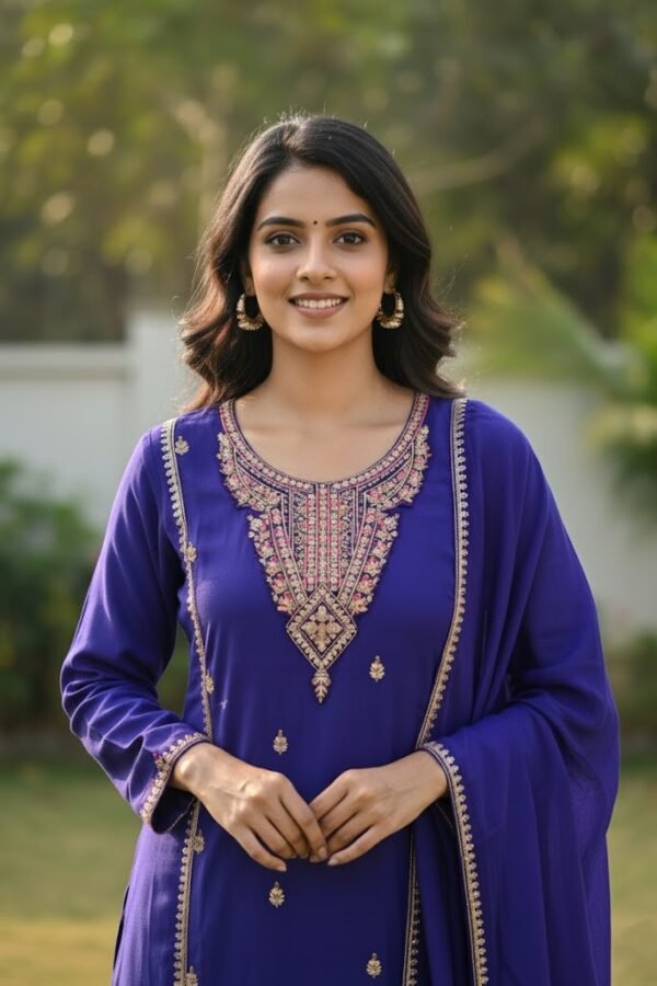 Elegant Royal Blue Vatican Fabric Zari Work Kurta Set with Dupatta