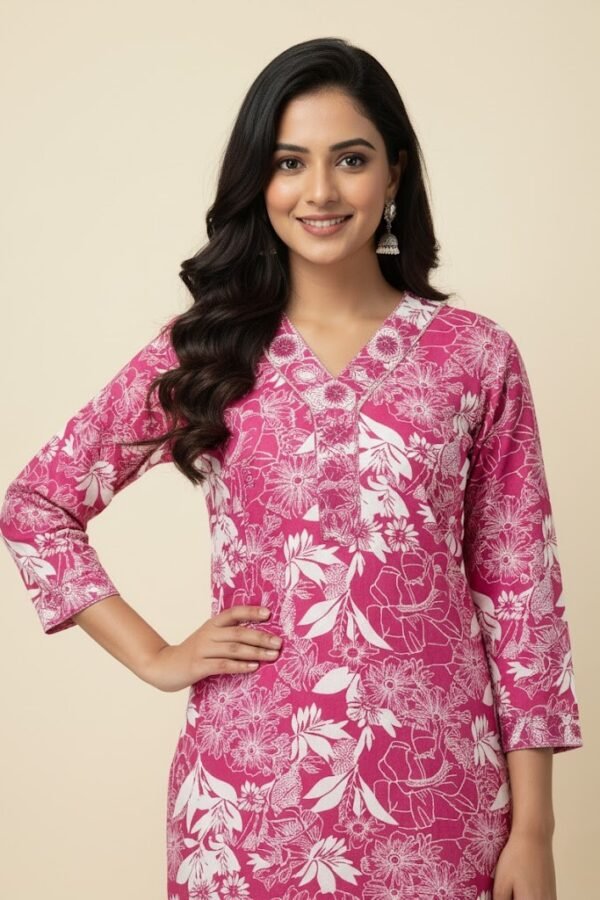Magenta and White Floral Rayon Co-ord Kurti Set