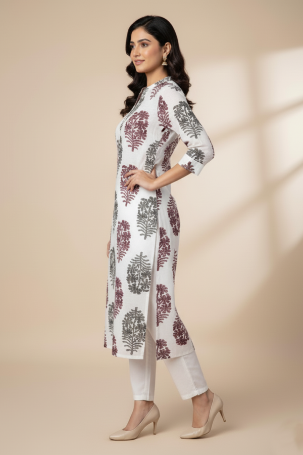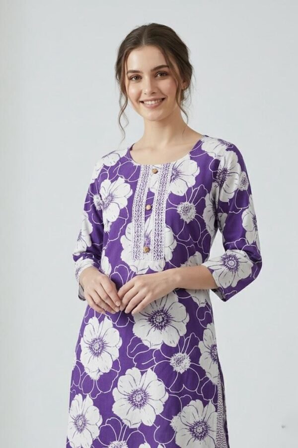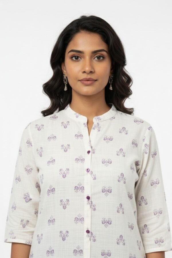 “Majestic Bloom” Cotton Printed Kurta and Co-ord Set (Purple & White)