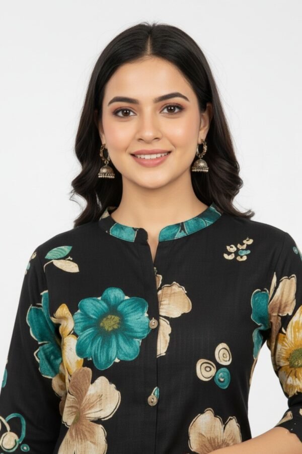 The Lila Floral Print Rayon Kurti & Pant Set