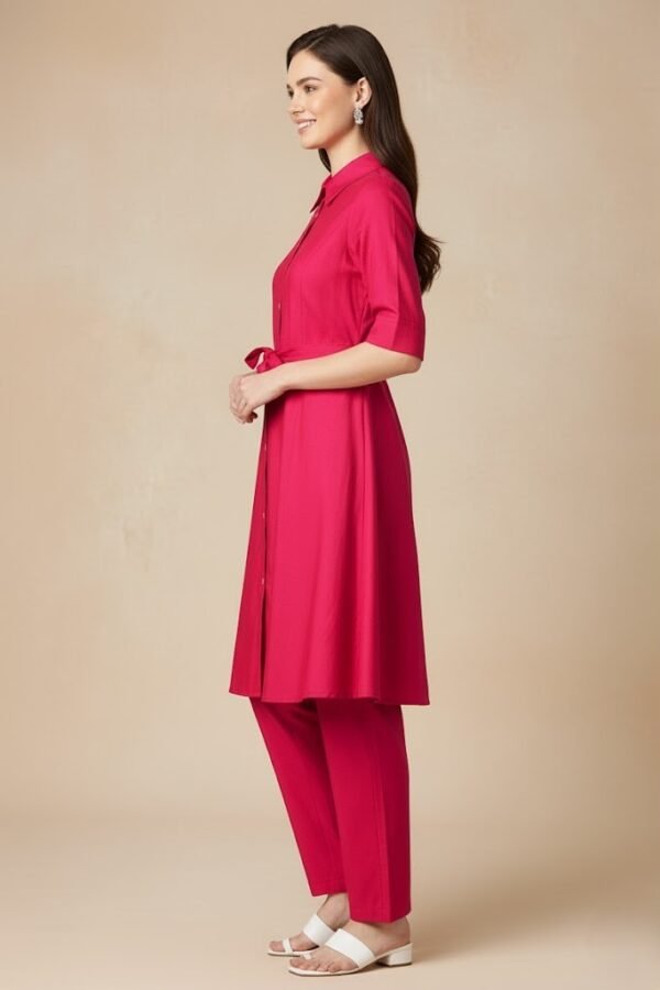 Vatican Fabric Shirt Kurti and Trousers Co-ord Set in Viva Magenta