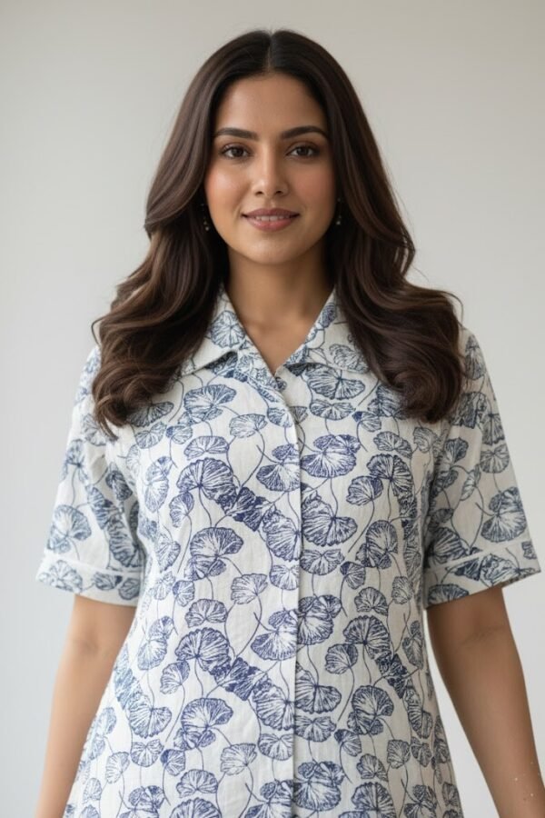 Indigo Blue Floral Printed Cotton Co-ord Set