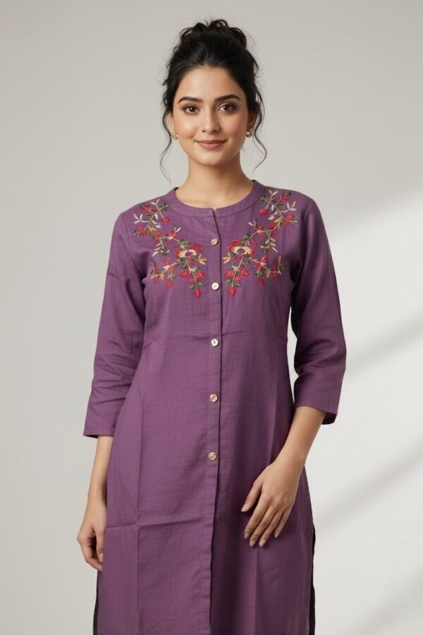 Embroidered Cotton Co-ord Set – Plum Purple