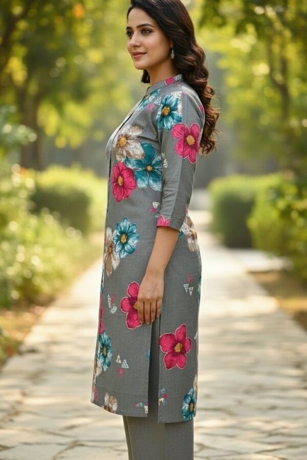 Grey Floral Printed Rayon Co-ord Kurti & Palazzo Set