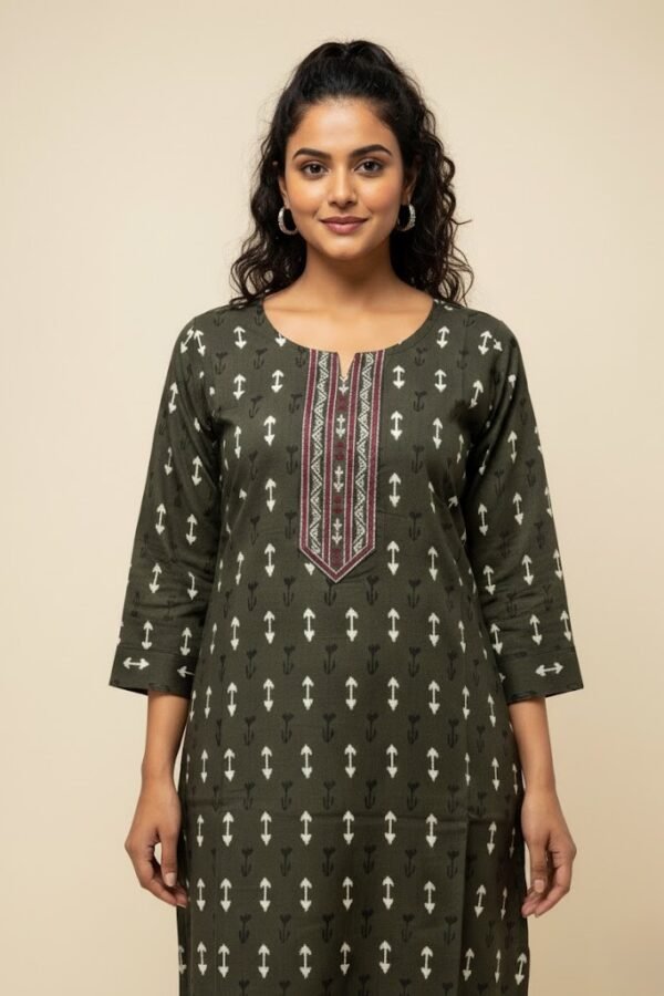 Avassa Olive Green Rayon Ikat-Print Kurti