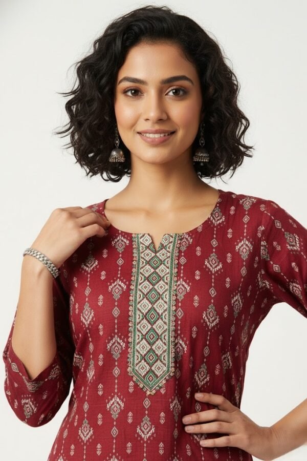 Avaasa Maroon & Green Patterned Rayon Kurti