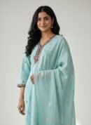 Embrace effortless elegance with our exquisite Aqua Blue Embroidered Cotton Kurta Set. Crafted from breathable cotton, this three-piece ensemble is designed for comfort and style, perfect for day events, casual outings, or festive gatherings.