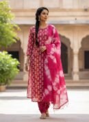 Embrace effortless elegance with this stunning three-piece kurti set, perfect for everyday wear and festive occasions alike. Crafted from breathable Cotton fabric, this ensemble combines traditional artistry with modern flair.