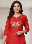 Embrace timeless elegance and premium comfort with The Majestic Red Silk Aari Kurti. This stunning ensemble is crafted for the discerning individual who appreciates high-quality materials and exquisite handiwork. Perfect for festive occasions, elegant gatherings, or making a sophisticated statement.